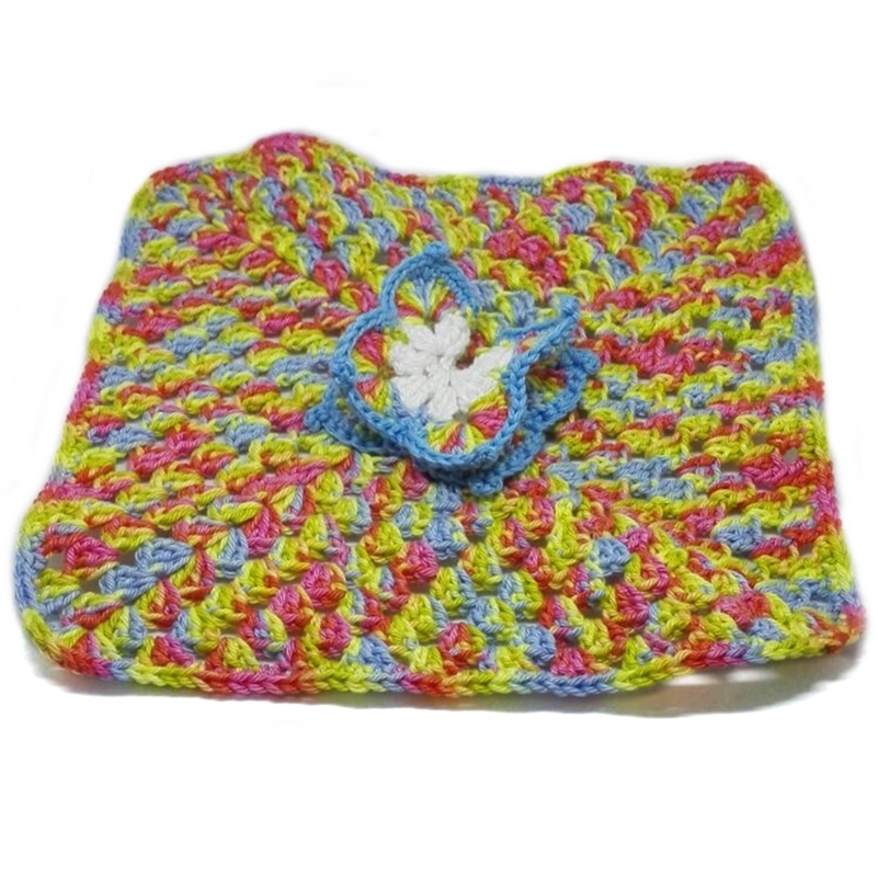 Gehaakt knuffeldoekje in bonte kleuren met vlinder 100% katoen
